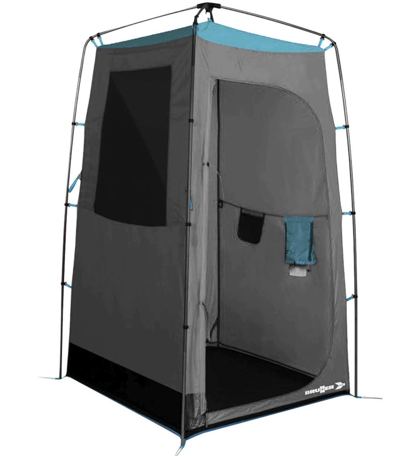 Sanity von Brunner ist ein vielseitig einsetzbares Sanitärzelt mit stabilem Stahlgestänge, mit herausnehmbarem Boden und verschließbarem Moskitonetzfenster.