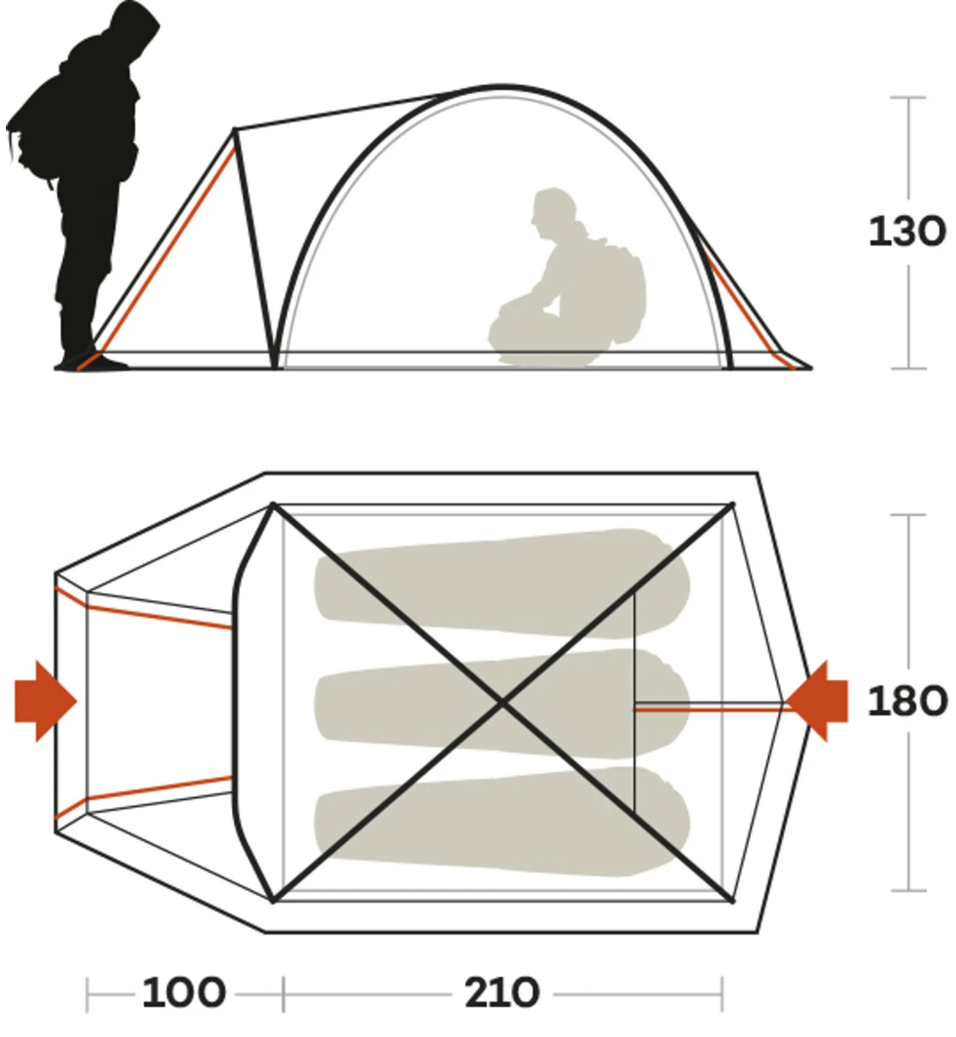 3-Saison-Campingzelt mit optimaler Bewegungsfreiheit und Bewohnbarkeit.