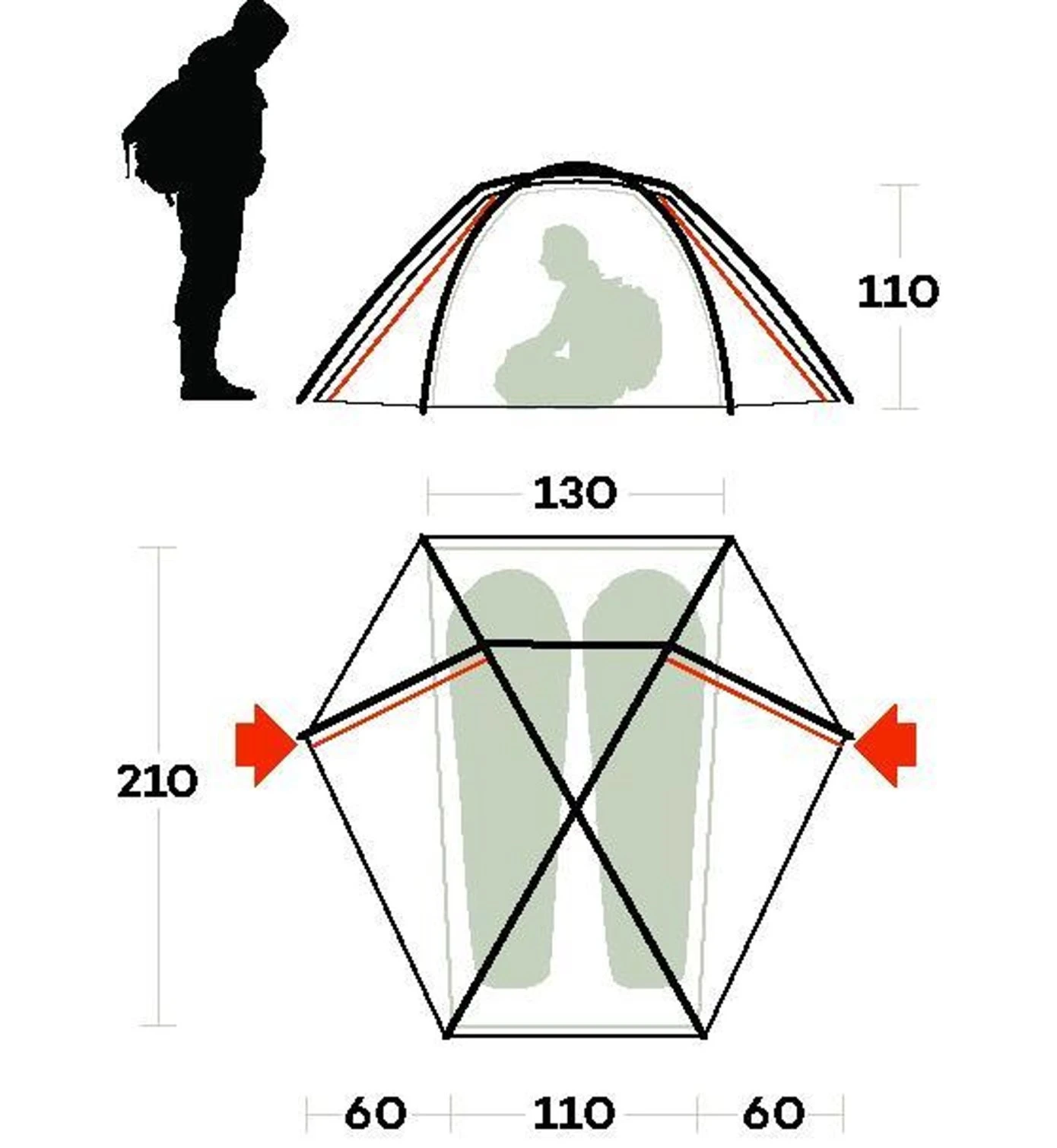 Stangensystem, das einen schnellen Aufbau ermöglicht. Da das Außenzelt zuerst