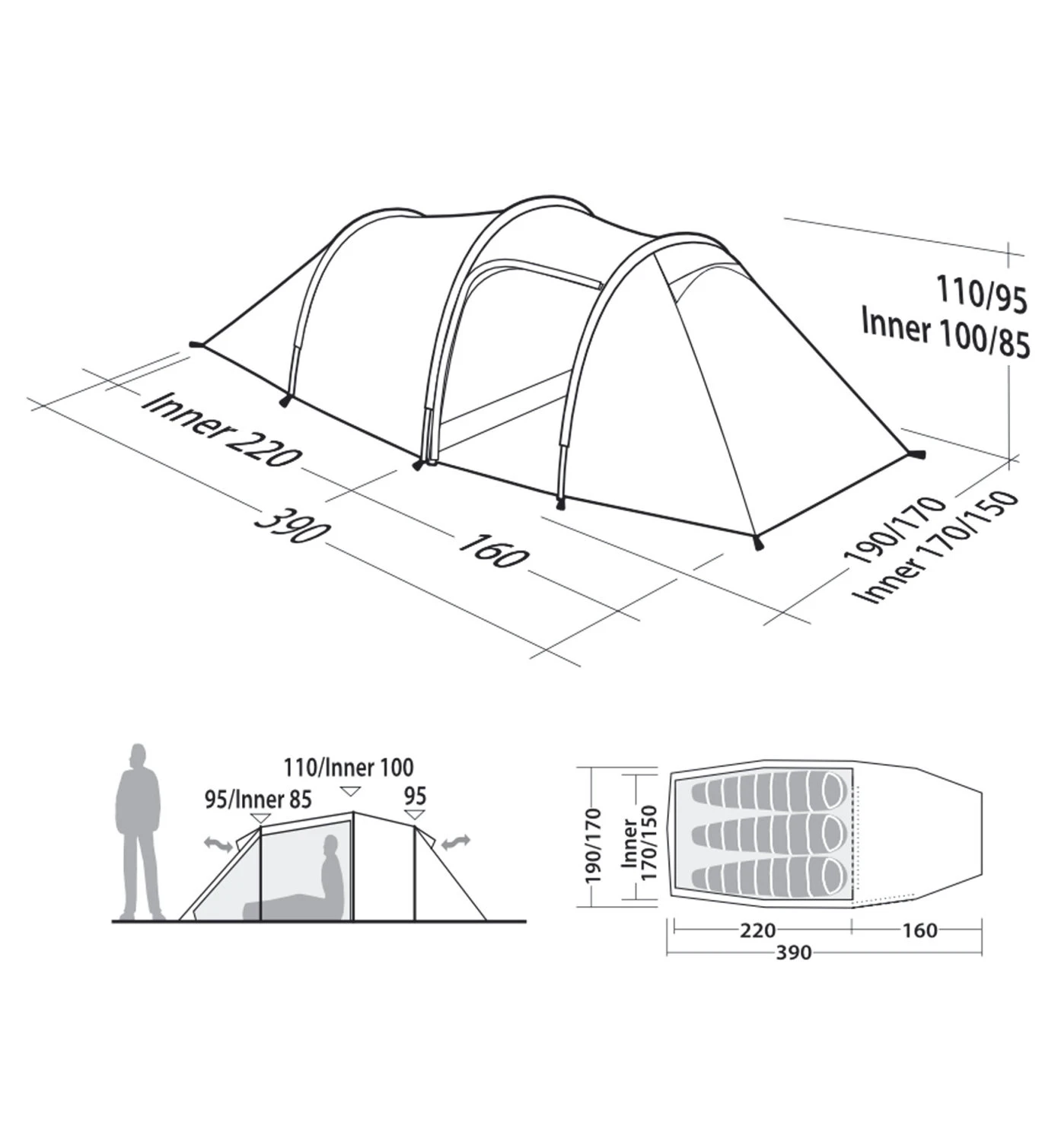 Pioneer 3EX Trekkingzelt von Robens, komfortabler Platz für bis zu 3