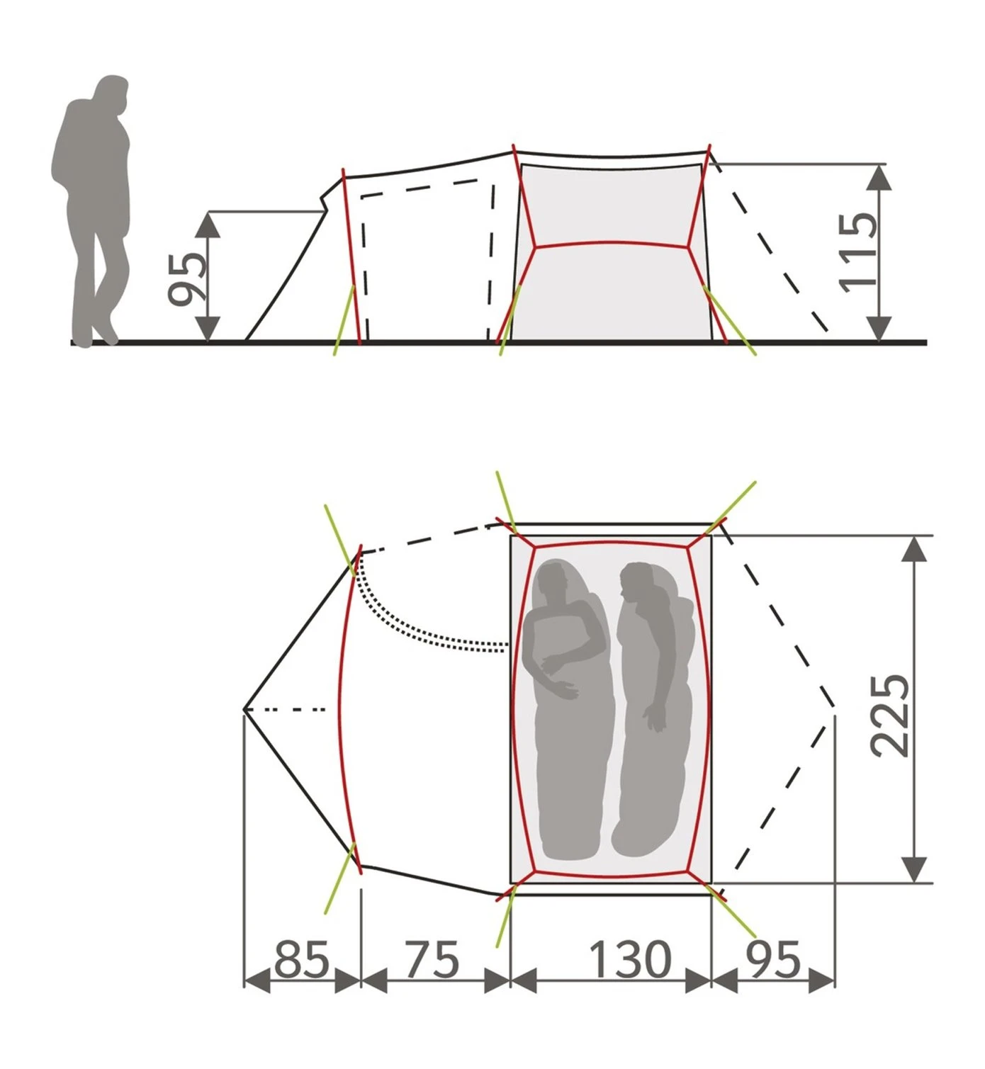 komfortable Trekker und Rucksacktouristen. Schnelle Montage, viel Platz und