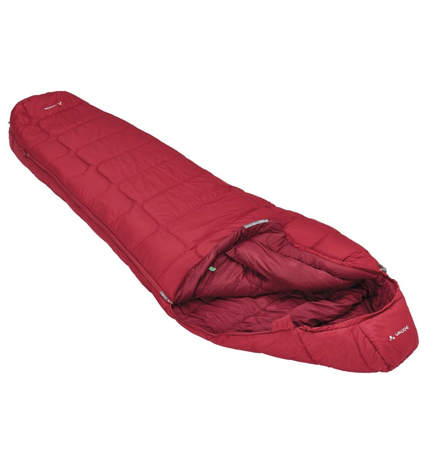 Der Mumienschlafsack Sioux 800 SYN aus Kunstfaser von Vaude ist leicht, atmungsaktiv und pflegeleicht und wird aus zertifizierten Bluesign-Materialien hergestellt.